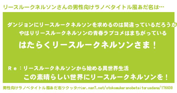 | 胡散臭い通販商品みたいなあだ名 | 『信頼と実績のネックレス…その名も「リースルークネルソン」』 |