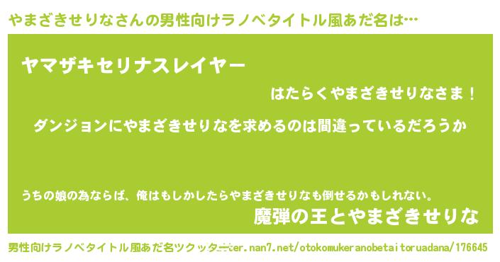 | 伝説のあだ名 | 『解き放たれた遊び人やまざきせりな』 |