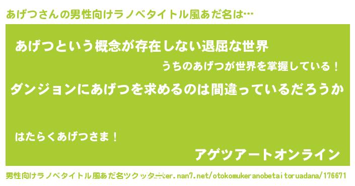 | 女子向けラノベタイトル風あだ名 | 『あげつは平凡を望む』 |
