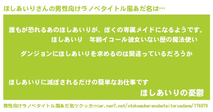 | 女子向けラノベタイトル風あだ名 | 『ほしあいりは平凡を望む』 |