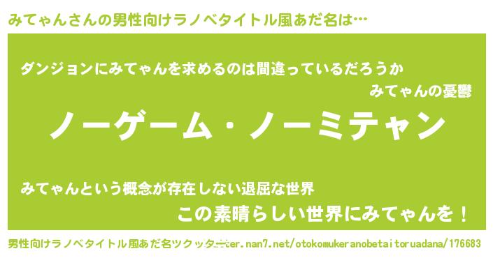 | 胡散臭い通販商品みたいなあだ名 | 『お金では代えられない隕石のかけら…その名も「みてゃん」』 |