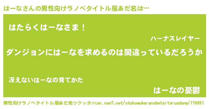 | ヘコむあだ名 | 『はーを』『はーにー』『はーな(笑)』 |