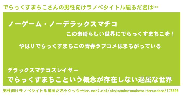 | 女子向けラノベタイトル風あだ名 | 『でらっくすまちこの雑貨屋さん』 |