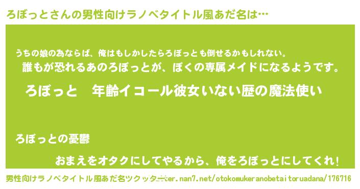| 胡散臭い通販商品みたいなあだ名 | 『運命の人と巡り会える高級そうな壺…その名も「ろぼっと」』 |