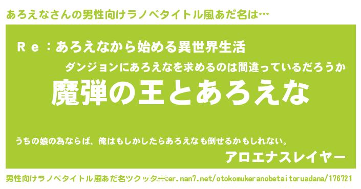 | 意味不明あだ名 | 『住所不定無職あろえな(6歳)』 |