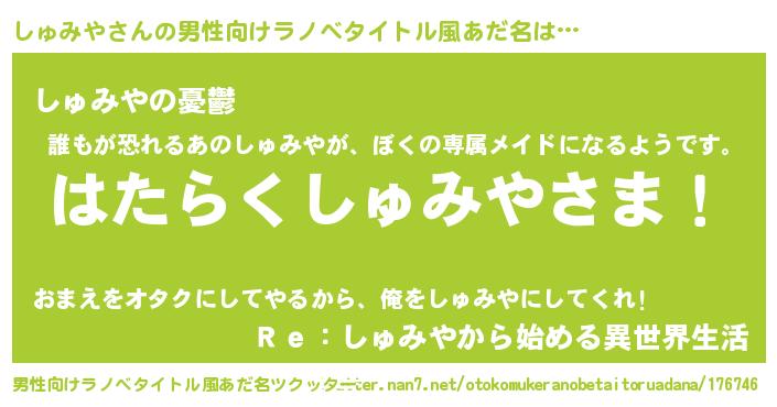| 胡散臭い通販商品みたいなあだ名 | 『必ず成功する霊験あらたかなお札…その名も「しゅみや」』 |