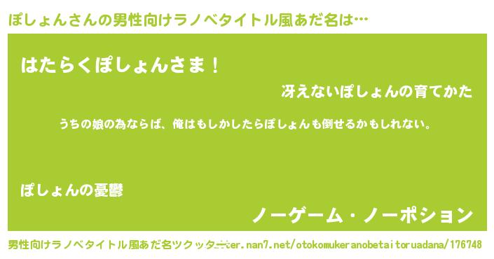 | 女子向けラノベタイトル風あだ名 | 『ぽしょんの婚約者』 |