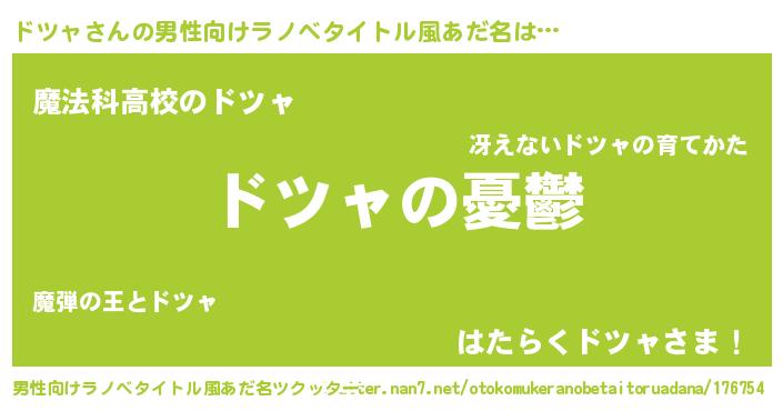 | 女子向けラノベタイトル風あだ名 | 『(仮)ドツャのやんごとなき事情』 |