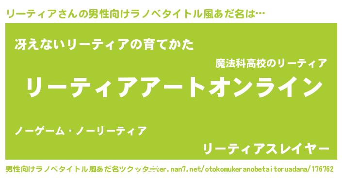 | 意味不明あだ名 | 『ペロリンリーティア』『自称リーティア』 |