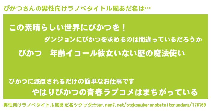 | 女子向けラノベタイトル風あだ名 | 『びかつの玉の輿計画!』 |