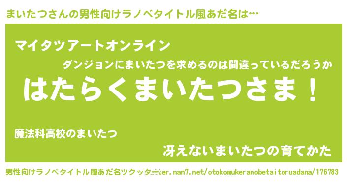 | 胡散臭い通販商品みたいなあだ名 | 『モテモテ間違いなし霊験あらたかなお札…その名も「まいたつ」』 |