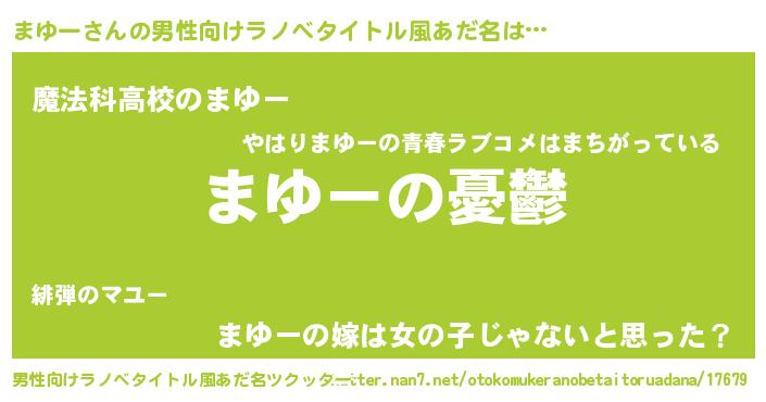 | 女子向けラノベタイトル風あだ名 | 『(仮)まゆーのやんごとなき事情』 |