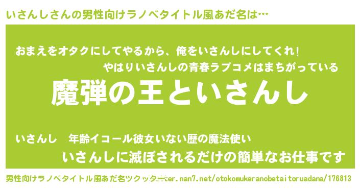 | ヒーロー風カッコイイあだ名 | 『仮面イサダー』『正義の使者いさんし』 |