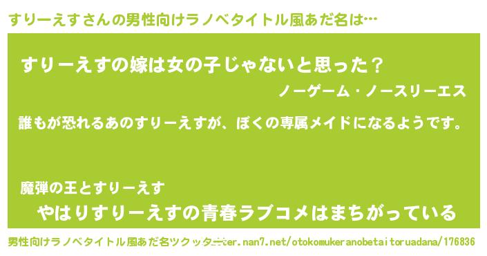 | 胡散臭い通販商品みたいなあだ名 | 『前代未聞の健康食品…その名も「すりーえす」』 |