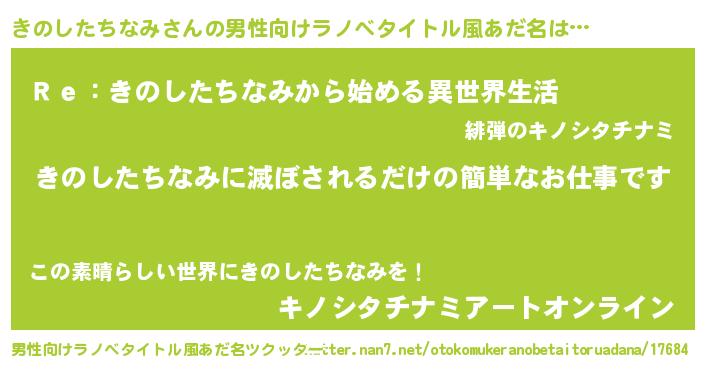 | 意味不明あだ名 | 『自称きのしたちなみ』 |