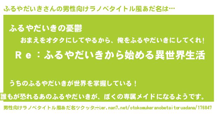 | 女子向けラノベタイトル風あだ名 | 『ふるやだいきストレイドッグス』 |