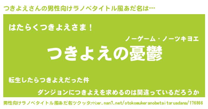 | 女子向けラノベタイトル風あだ名 | 『(仮)つきよえのやんごとなき事情』 |