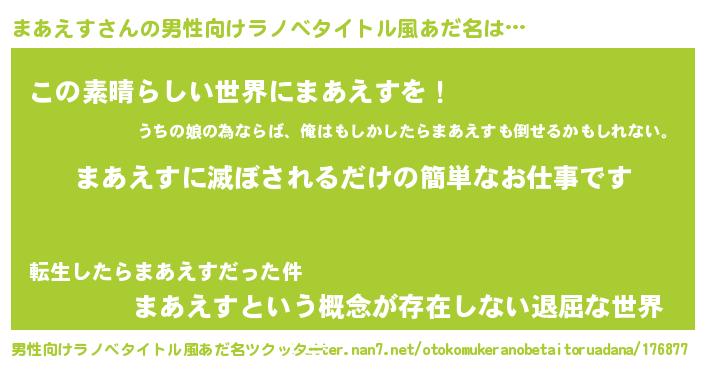 | 意味不明あだ名 | 『住所不定無職まあえす(3歳)』 |