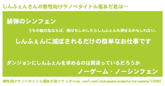 | 伝説のあだ名 | 『魔王と互角に渡り合う技術者しんふぇん』 |