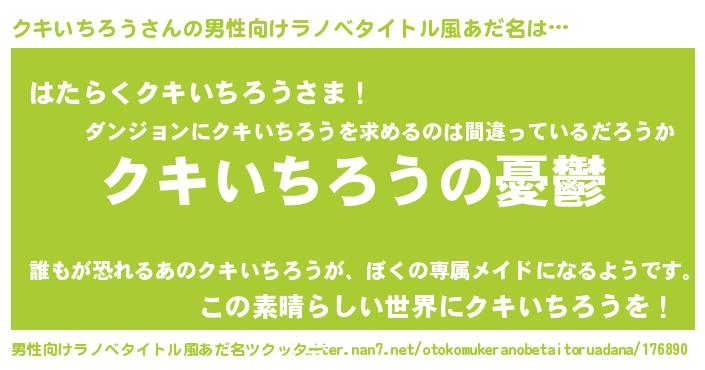 | 女子向けラノベタイトル風あだ名 | 『(仮)クキいちろうのやんごとなき事情』 |