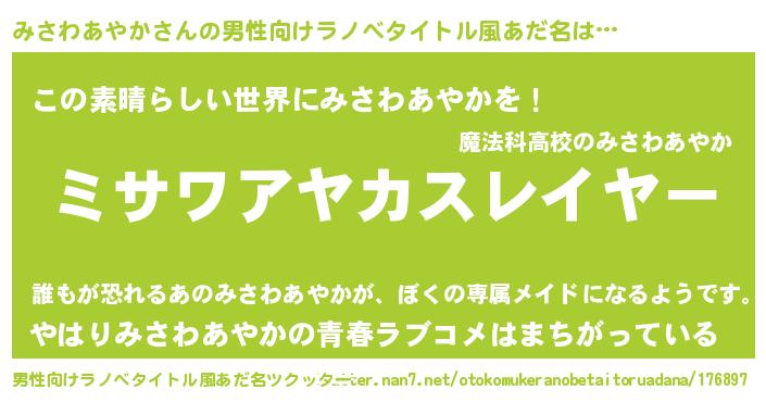 | ヒーロー風カッコイイあだ名 | 『仮面ミサダー』『ネオミサワアヤカ』 |