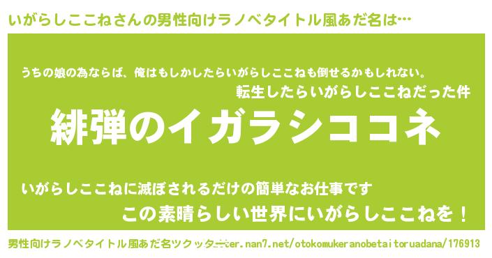 | 女子向けラノベタイトル風あだ名 | 『シンデレラいがらしここね家の靴箱館』 |