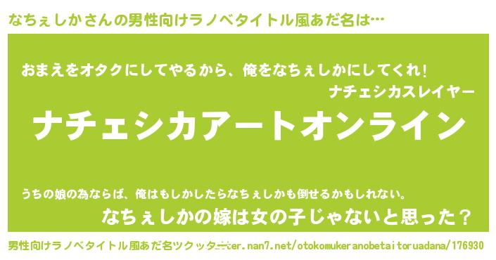 | 女子向けラノベタイトル風あだ名 | 『なちぇしか姫と円卓の騎士』 |