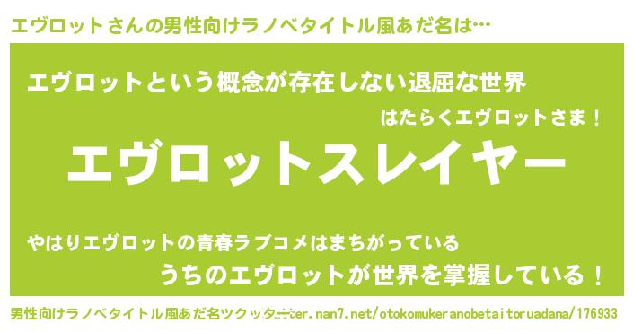 | ヒーロー風カッコイイあだ名 | 『ネオエヴロット』『究極戦士エヴロット』 |