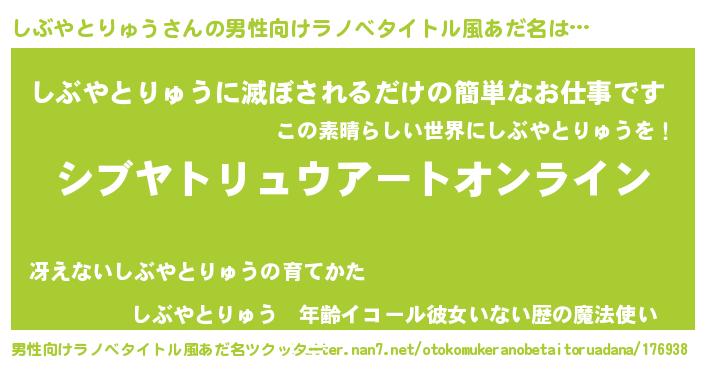 | ヒーロー風カッコイイあだ名 | 『スーパーシブヤトリュウ』 |