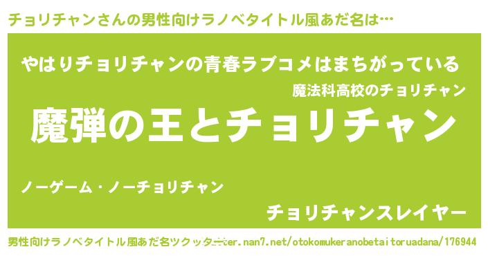 | 意味不明あだ名 | 『住所不定無職チョリチャン(10歳)』 |