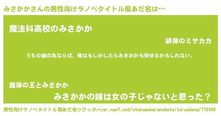| 女子向けラノベタイトル風あだ名 | 『みさかか伯爵の花嫁』 |