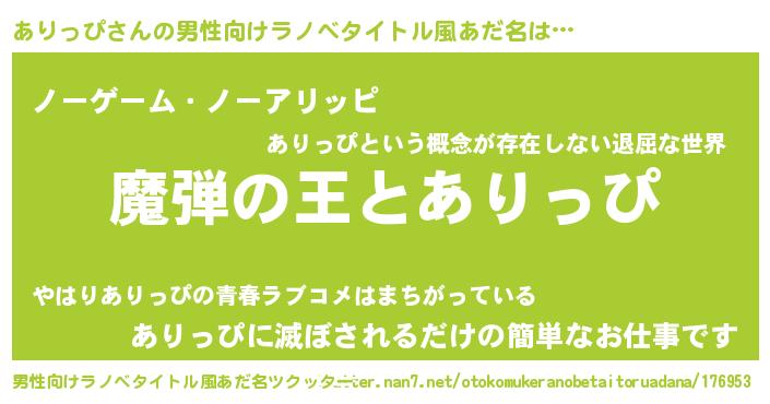 | 意味不明あだ名 | 『住所不定無職ありっぴ(47歳)』 |