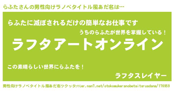 | 胡散臭い通販商品みたいなあだ名 | 『億万長者になれる霊験あらたかなお札…その名も「らふた」』 |