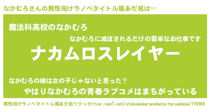 | ヒーロー風カッコイイあだ名 | 『ウルトラ戦士ナカムロ』『暗黒騎士ナカ』 |
