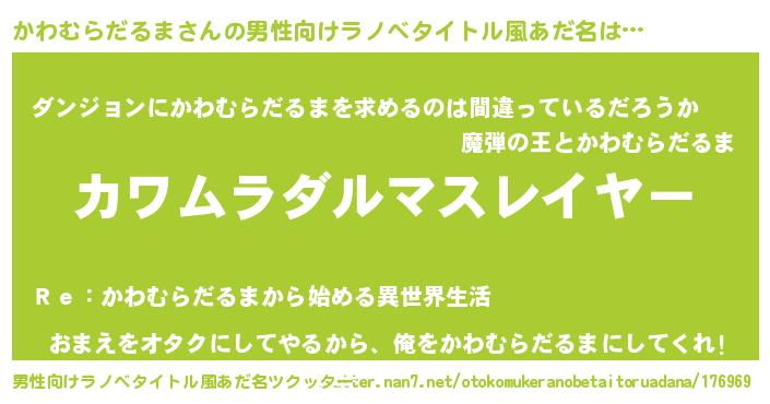 | 胡散臭い通販商品みたいなあだ名 | 『信頼と実績のネックレス…その名も「かわむらだるま」』 |