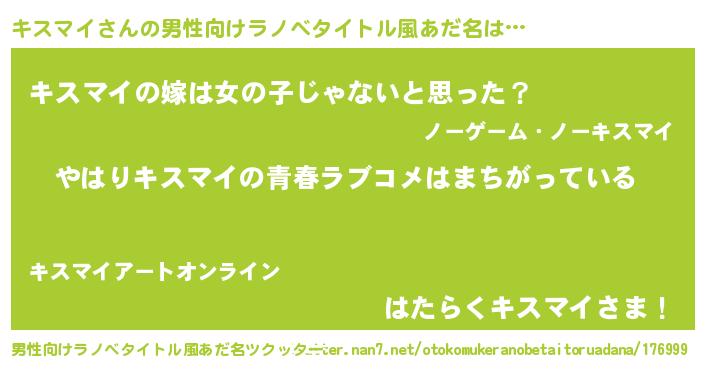 | 女子向けラノベタイトル風あだ名 | 『キスマイの雑貨屋さん』 |