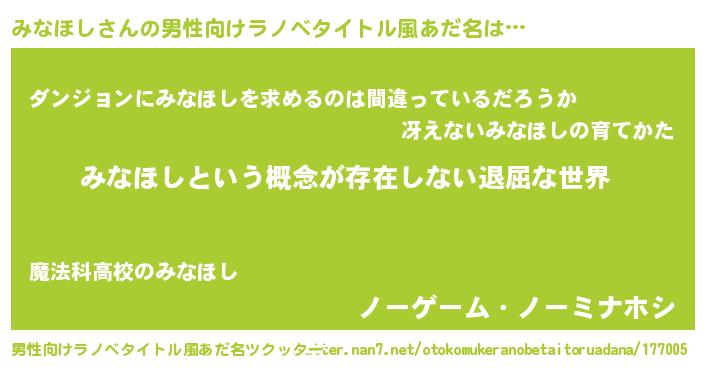 | 女子向けラノベタイトル風あだ名 | 『みなほしの契約王妃』『みなほし恋絵巻』 |