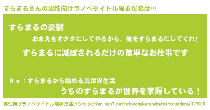 | 意味不明あだ名 | 『ペロリンすらまる』『自称すらまる』 |
