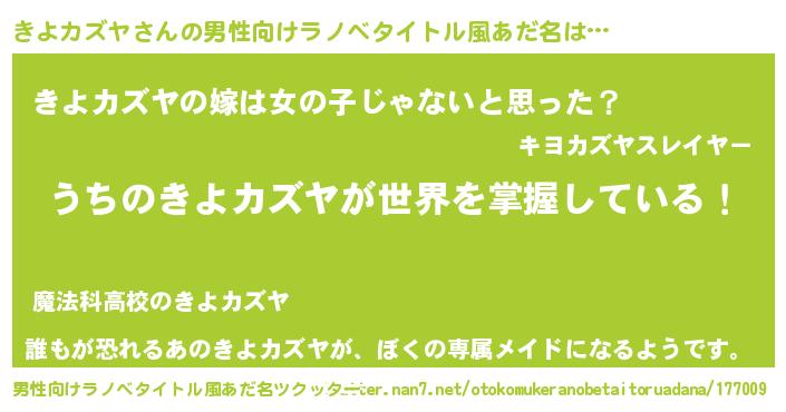 | ヒーロー風カッコイイあだ名 | 『天弓騎士キヨ』『ネオキヨカズヤ』 |