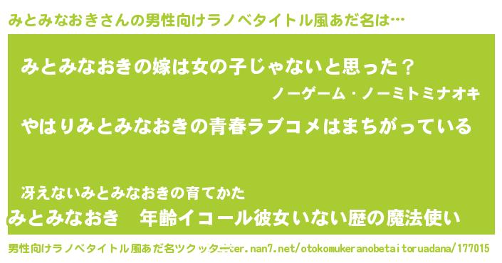 | 女子向けラノベタイトル風あだ名 | 『みとみなおきの雑貨屋さん』 |