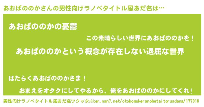 | 伝説のあだ名 | 『聞きしに勝る吟遊詩人あおばののか』 |