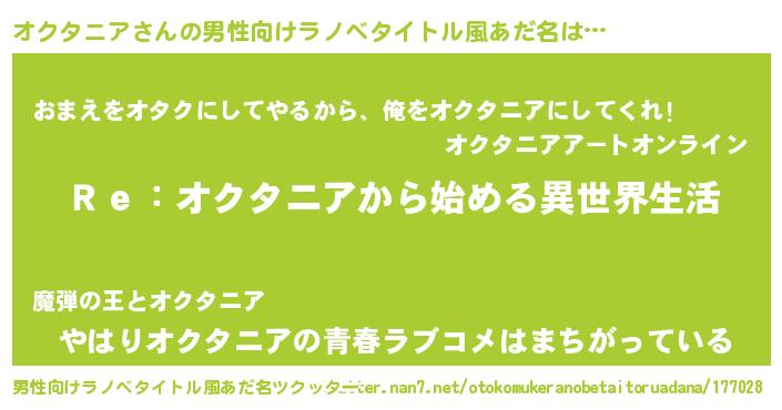 | 女子向けラノベタイトル風あだ名 | 『闇のオクタニア』 |