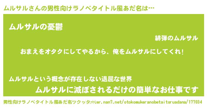 | 女子向けラノベタイトル風あだ名 | 『ムルサル恋絵巻』『ムルサルの契約王妃』 |