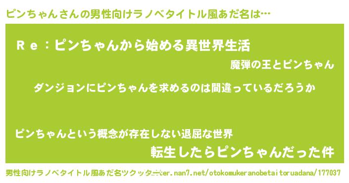 | ヘコむあだ名 | 『ピンを』『ピンちゃん(遠い目)』 |