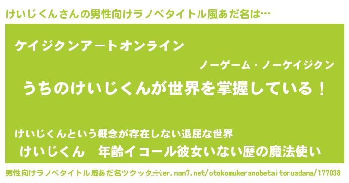 | ヘコむあだ名 | 『けいにゅー』『けいじくん(笑)』 |