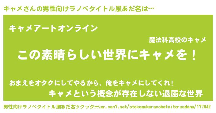 | 意味不明あだ名 | 『住所不定無職キャメ(9歳)』『自称キャメ』 |