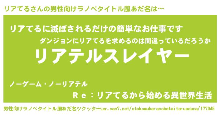 | ヒーロー風カッコイイあだ名 | 『ウルトラ戦士リアテル』『幻影騎士リア』 |