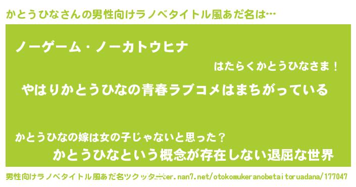 | 意味不明あだ名 | 『かとうひなフォーエバー』 |
