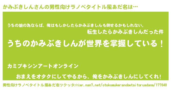 | 女子向けラノベタイトル風あだ名 | 『男装かみぶきしんの憂鬱な任務』 |