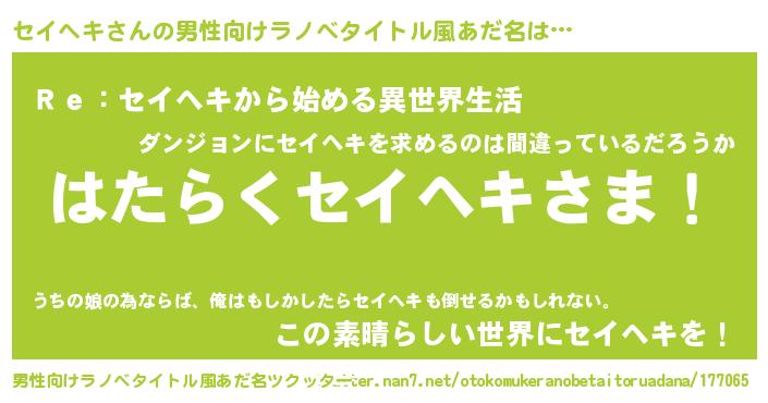 | ヒーロー風カッコイイあだ名 | 『サイバー戦士セイヘキ』『仮面セイダー』 |